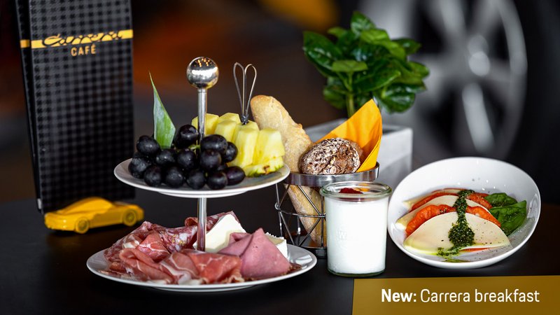 Carrera Café offers a varied range of seasonal savoury and sweet snacks accompanied by a range of speciality coffees. Start the day with our Carrera breakfast or let yourself be surprised by the changing weekly offers of our in-house gastronomy. We will indulge both your eyes and your taste buds. Take some time for your very personal Porsche experience. A pit stop in Porsche style.