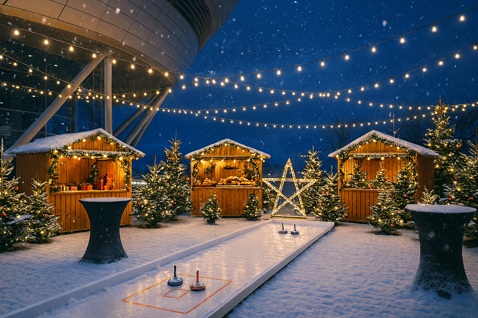 Ein kleiner Weihnachtsmarkt lädt mit typischen winterlichen Gerichten und heißen Getränken zum Verweilen ein. Freuen Sie sich außerdem auf eine Eisstockbahn und eine Fotobox für festliche Erinnerungen. Genießen Sie die lockere Atmosphäre und lassen Sie mit Gleichgesinnten das Jahr Revue passieren. Bei einem Glühwein oder alkoholfreien Punsch können Sie den Ausblick auf unseren Rundkurs bewundern.